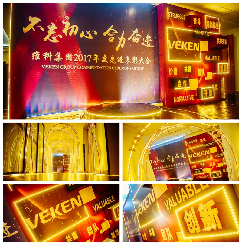 “不忘初心,合力奮進”維科集團2017年度表彰大會主題背景簽到處及會場通道入口