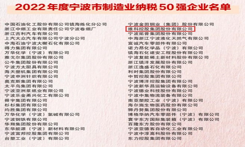 7月14日上午被譽為“寧波經濟奧斯卡”的2022寧波創新創業風云榜再次揭開帷幕,維科集團再次榮登納稅榜單,榮獲2022年度寧波市制造業納稅50強。