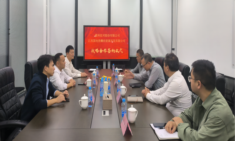 隨后,陳總、黃總分別介紹了各自企業的發展現狀、產業布局和戰略規劃等情況。雙方目標一致,愿景相同,優勢互補,合作空間廣闊且潛力巨大,雙方達成一致共識:一是項目開發合作,雙方期待在資源獲取、產業配套、合同能源管理、工程建設等方面實現共贏發展;二是技術創新合作,雙方將在科技創新和數字化方面進行深度合作,特別是在儲能領域開展技術合作,共同研究合作模式,使科研成果為企業生產經營服務,創造效益;三是合同能源管理,贛欣公司發揮國家電投行業技術優勢為維科技術提供可靠、穩定、優質的綜合智慧能源及信息平臺服務。