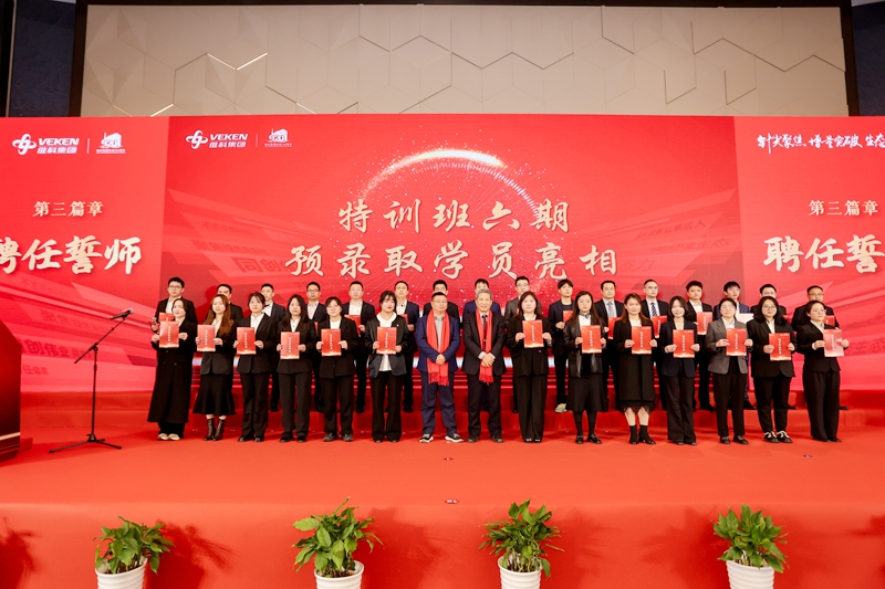 特訓(xùn)班六期預(yù)錄取學(xué)員代表也登臺(tái)亮相進(jìn)行了誓師,集團(tuán)人資總監(jiān)兼總干部部總經(jīng)理賁總和集團(tuán)董事長、學(xué)院院長何董為學(xué)員代表頒發(fā)了預(yù)錄取通知書。