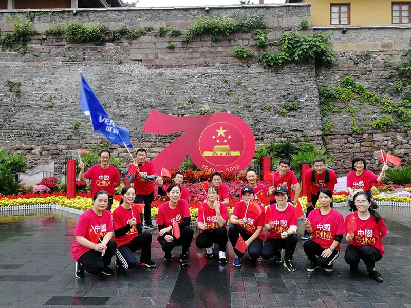 活動在莊嚴的升國旗儀式中拉開帷幕,秋風細雨阻擋不了隊員們的飽滿熱情,在團隊風采展示和熱身運動后,各代表隊高擎維科旗,按照設定的規劃路線,用腳步跑出一張張“愛國”主題的路線,用團隊合影記錄這一刻美好瞬間。在維科人獨具匠心的創意下,“70”“五星紅旗”“中國”等元素活靈活現地呈現開來,在城市的大街小巷,努力奔跑著的維科團隊,如同一群“追夢人”,成為了一道亮麗的風景線。每一位隊員都收獲了專屬定制的活動文化衫和紀念獎章,倍感榮耀!