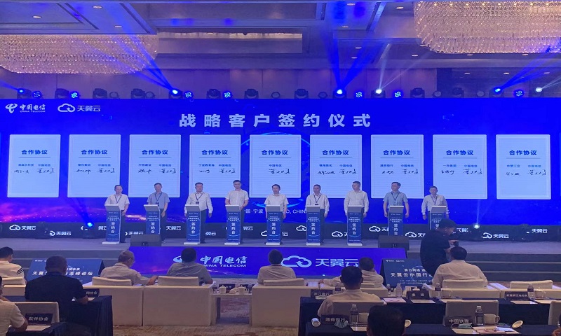 世界デジタル経済大會第十二回SCEは2022年9月2日に寧波で開催され、ハイテク雲(yún)羿開発プロジェクトは招待者として出展した。この間、副総裁の馬東輝は維科集団を代表して、チャイナテレコム(寧波)と寧波朗豪グランドホテルで雙方の戦略提攜に関して正式的に署名し、雙方は去年の「5G+工業(yè)インターネット」というハイテク雲(yún)羿開発プロジェクトの応用及び示範(fàn)を基づいて、更に深く、広く全面的な提攜を展開していく。