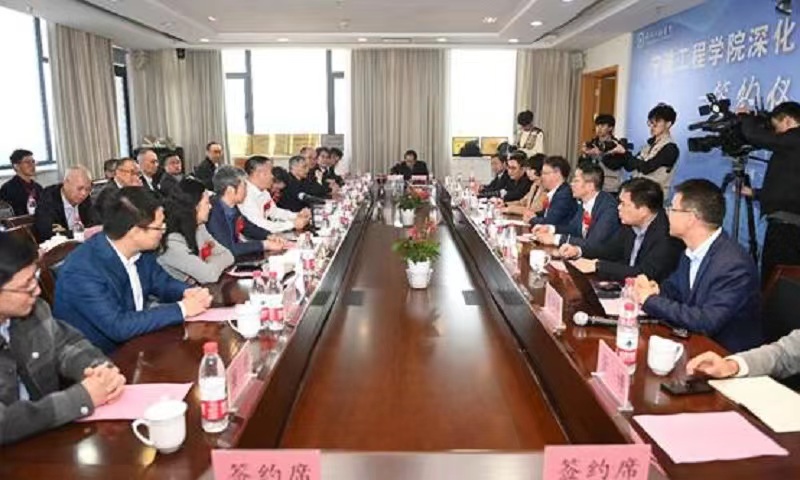 11月22日午前、寧波工程學(xué)院新エネルギー産業(yè)技術(shù)創(chuàng)新実踐基地(教育の強(qiáng)國推進(jìn)工程)プロジェクトの起動(dòng)式及び學(xué)校と現(xiàn)地政府の提攜を深める調(diào)印式は前灣キャンパスで行われました。前灣新區(qū)の黨労働委員會(huì)副書記及び管理委員會(huì)主任の王兆波、寧波市國家発展改革委員會(huì)黨組織メンバー及び副主任の竺培楠、寧波市教育局黨委員會(huì)委員及び副局長の王飛と寧波市財(cái)政局などの関係部署の責(zé)任者と、寧波工程學(xué)院校長の邵千鈞などの學(xué)校側(cè)のリーダーが出席して、維科集団が招待され、調(diào)印式に出席しました。
