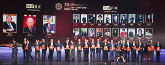 2018年11月16日、「甬立潮頭、合力興甬」をテーマとした世界「寧波幫?幫寧波」発展大會が寧波文化広場保利大劇場で盛大に開催された。今回の會議では、25の國と地域から1000人以上の「寧波幫」と「幫寧波」の代表者は立會人として、「改革開放40周年?時(shí)代甬商」のリストが発表され、浙江省委員會副書記、寧波市委員會書記の鄭柵潔氏が自ら授賞した。集団何理事長は「傑出した甬商」の稱號を獲得した。